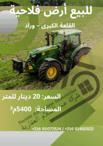 بالقلعة الكبرى – وراد للبيع أرض فلاحية